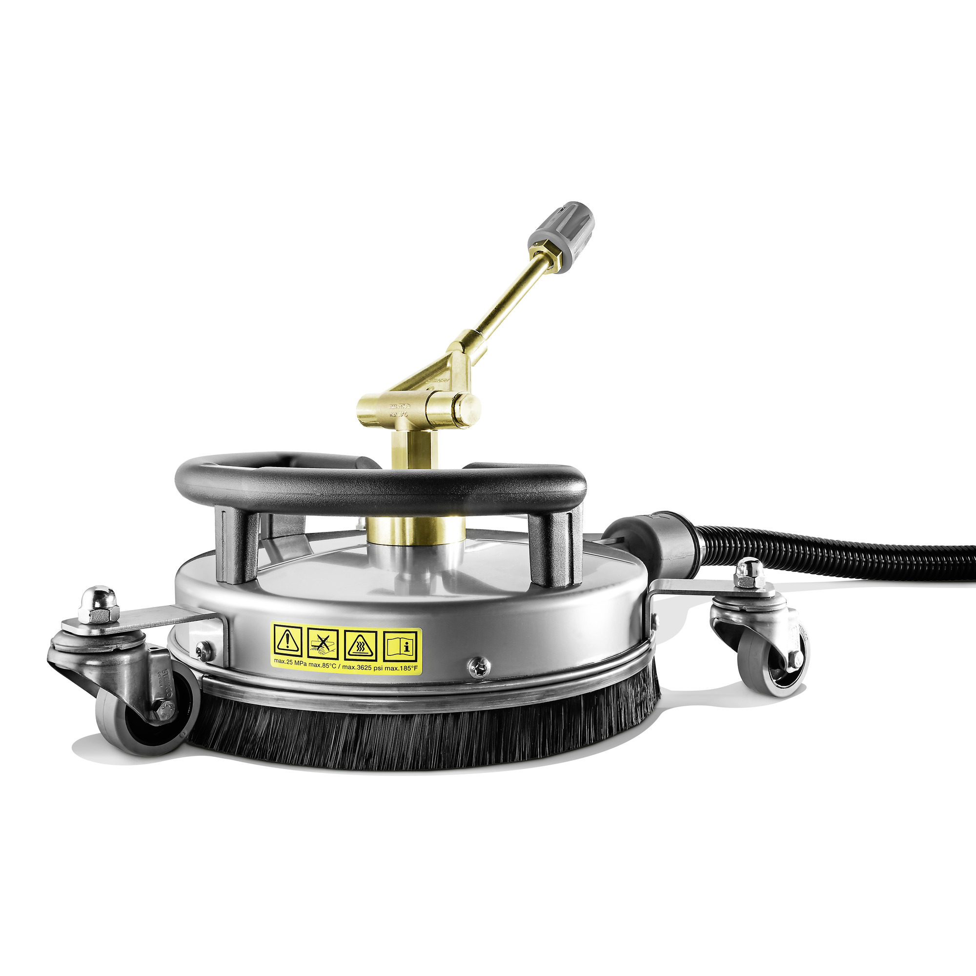 Myjka do powierzchni FRV 30 Me ze stali nierdzewnej umożliwia czyszczenie gorącą wodą o temperaturze do 85°C. Dzięki zintegrowanemu automatycznemu odsysaniu brudnej wody myjka FRV 30 Me ze stali nierdzewnej sprawia, że czyszczenie powierzchni jest wydajniejsze zarówno wewnątrz, jak i na zewnątrz budynków. Myjka FRV 30 Me jest wyposażona w odporny na wysokie temperatury wąż ssący o długości 7,5 m wykonany z poliuretanu. Do dodatkowych zalet wysokowydajnej myjki do powierzchni należą niepozostawiające śladów rolki sterujące i podwójne łożysko ceramiczne. Dane techniczne: Maks. 250 barów / 1300 l/h. (Zestaw dysz odpowiedni do konkretnego urządzenia zamawia się oddzielnie)