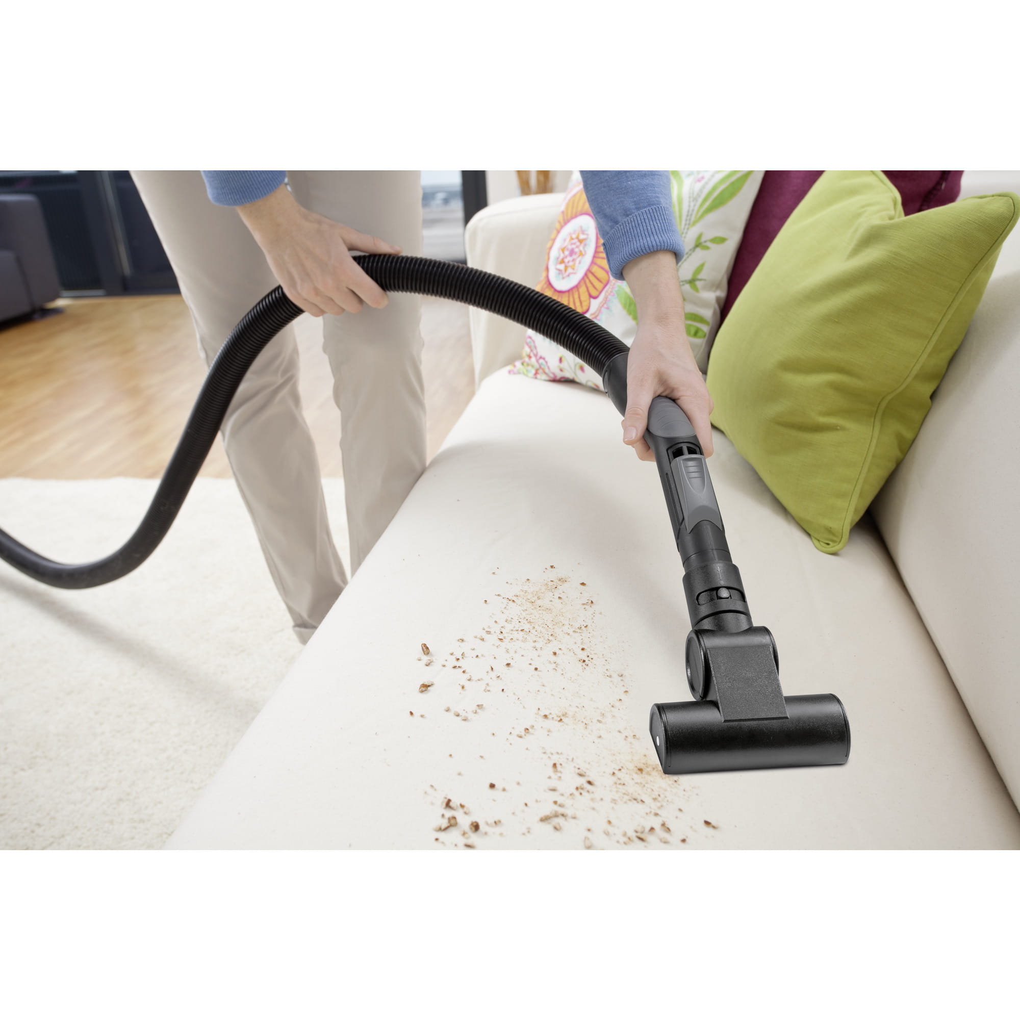- Efektywnie zbiera zabrudzenia nawet z dywanów o wysokim runie.