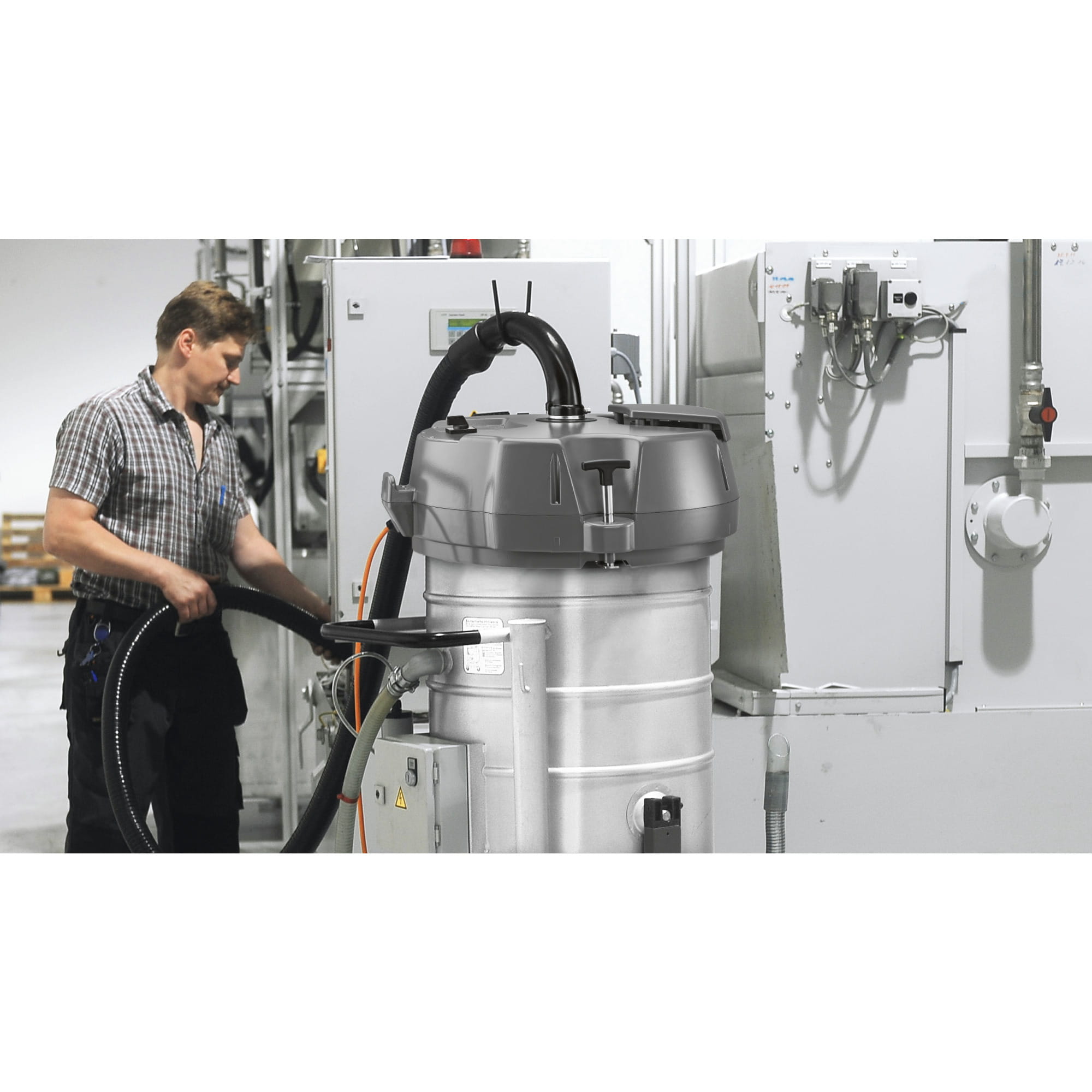 - Obrotowe przyłącze węża na głowicy zapewnia oszczędność czasu dzięki możliwości pracy bez konieczności przestawiania odkurzacza.