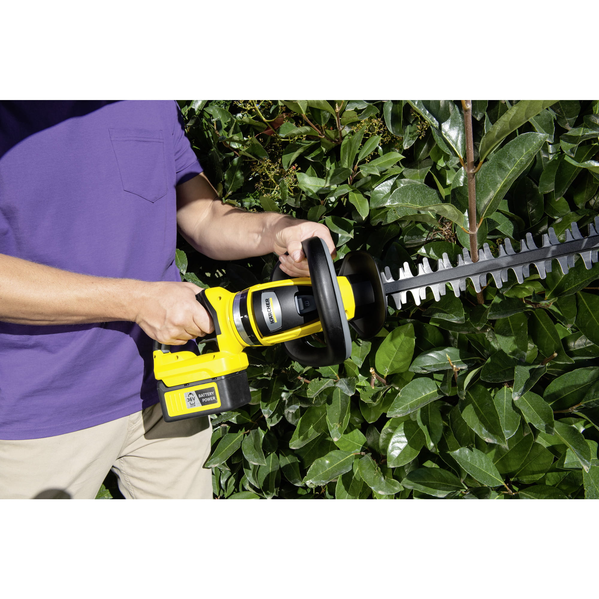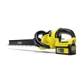 Bateryjne nożyce do żywopłotu Kärcher HGE 36-60 Batter Set to solidne urządzenie. Dzięki 2-stopniowej regulacji prędkości użytkownik może wybierać między maksymalną prędkością i mocą, zależnie od zastosowania. Uchwyt można obrócić o 180° w wielu krokach, co zapewnia komfort w każdej pozycji roboczej - wszystko bez obciążania rąk i ramion np. przy pracy w pionie. Dodatkowy zgarniacz do ściętych gałązek jest wyjątkowo praktyczny. Gwarantuje on, że ścinki, które normalnie lądowałyby w żywopłocie mogą zostać łatwo zmiecione na ziemię. Wycinane laserowo ostrze z wykończeniem diamentowym zapewnia bardzo precyzyjny rezultat cięcia. Dodatkowa osłona ostrza zapobiega uszkodzeniu budynków i posadzek jak również samego ostrza, a wbudowany wieszak gwarantuje łatwe przechowywanie na ścianie. Funkcja piły sprawia, że cięcie nawet grubszych gałęzi staje się łatwe a zabezpieczenie przed zablokowaniem pozwala na pracę bez przerw. Zestaw zawiera jedną baterię oraz szybką ładowarkę.