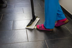 Zestaw ściereczek podłogowych Sensitive zawiera dwie ściereczki wykonane z bardzo miękkich włókien, które przenoszą mniej wilgoci i ciepła na posadzkę. Oznacza to, że nawet wrażliwe posadzki o zamkniętej strukturze mogą być czyszczone parą w bardzo delikatny sposób. Dzięki systemowi mocowania na rzep ściereczki można łatwo i szybko przymocować do dyszy podłogowej EasyFix parownicy: wystarczy przycisnąć ściereczkę do czyszczenia posadzek do dyszy podłogowej EasyFix i gotowe. Podczas pracy ściereczka pozostaje dobrze zamocowana na swoim miejscu — nawet czyszczenie narożników i krawędzi nie sprawia trudności. Po pracy zużytą ściereczkę można zdjąć z dyszy podłogowej EasyFix bez kontaktu z zanieczyszczeniami: w tym celu wystarczy nadepnąć przymocowany do ściereczki i pociągnąć dyszę do góry.
